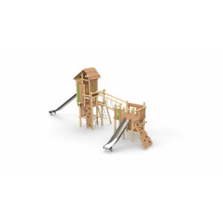 Combi-forteresse - Parcours + Tour sans toit Toboggan Inox Prix sur devis