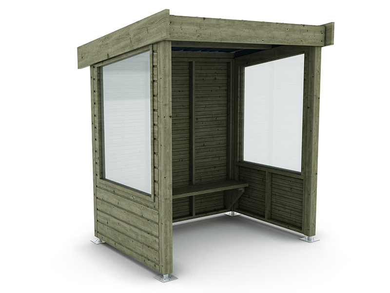 Abris bus en bois avec 2 parois vitrées translucides en polycarbonate 6 mm