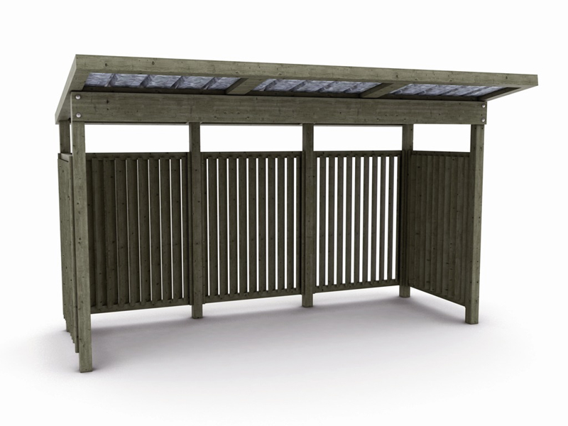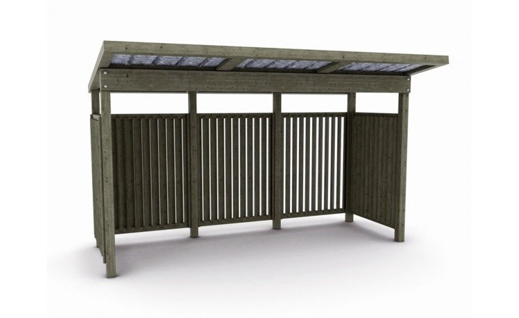 Paroi en lames obliques 145x21mm angles arrondis posées à 45°Poteaux 9 x 9 cm avec ferrures galvanisées à fixer sur dalle béton