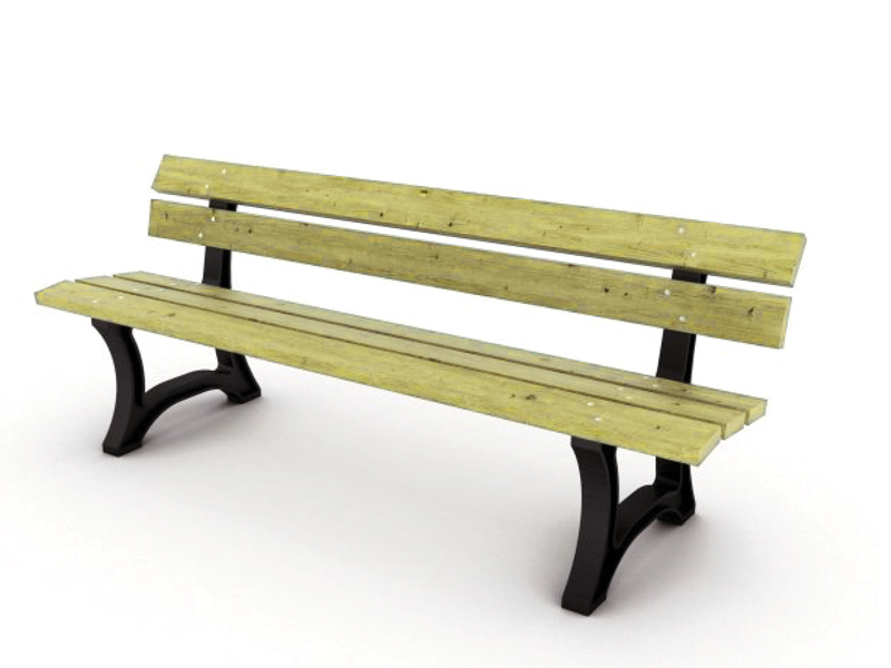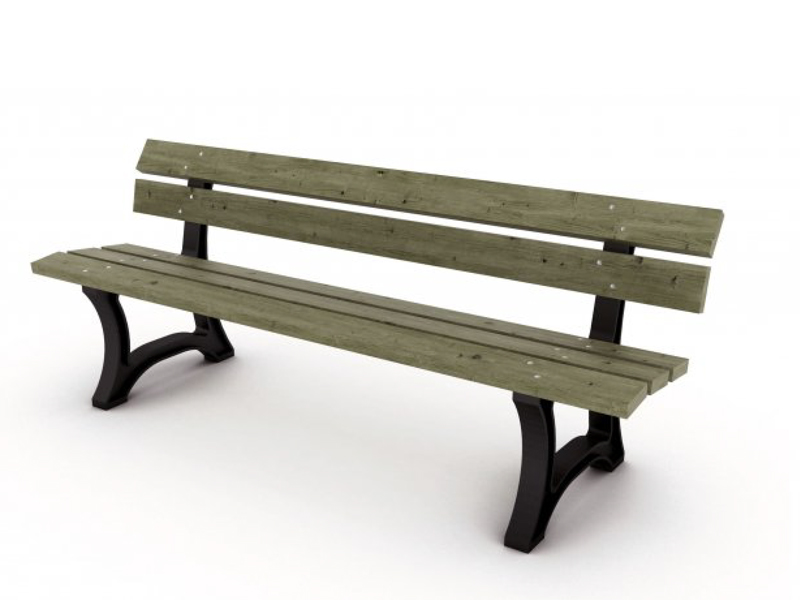 Banc d'extérieur avec assise et dossier en pin ou robinierPieds en fonte laqués noirsLaquage en pied couleur, nous consulterVisserie inox