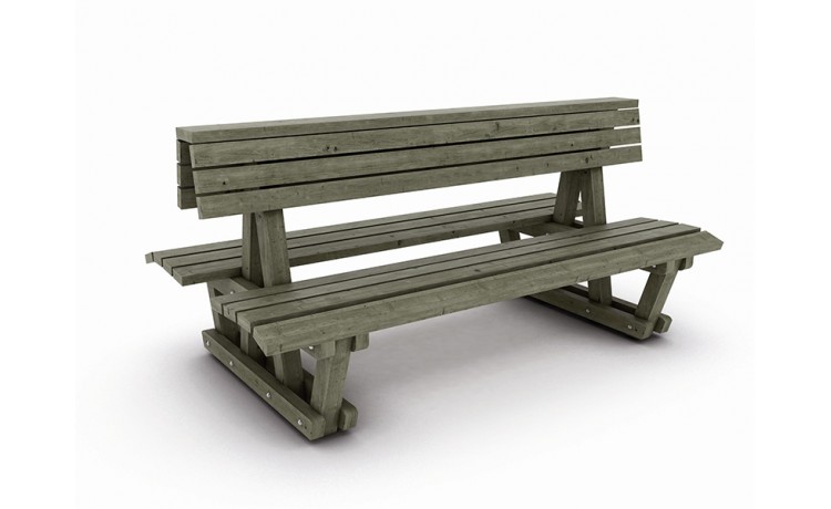 Banc d'extérieur en bois avec assise et dossier en pin traité CL4- Pin sylvestre CL4- CTB B+ /TANALITH E/NF EN 5990.