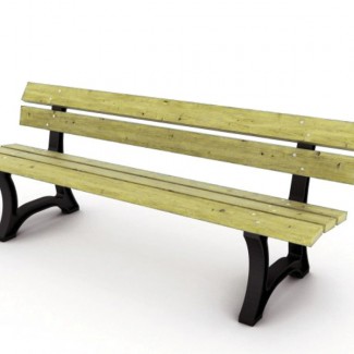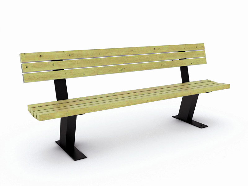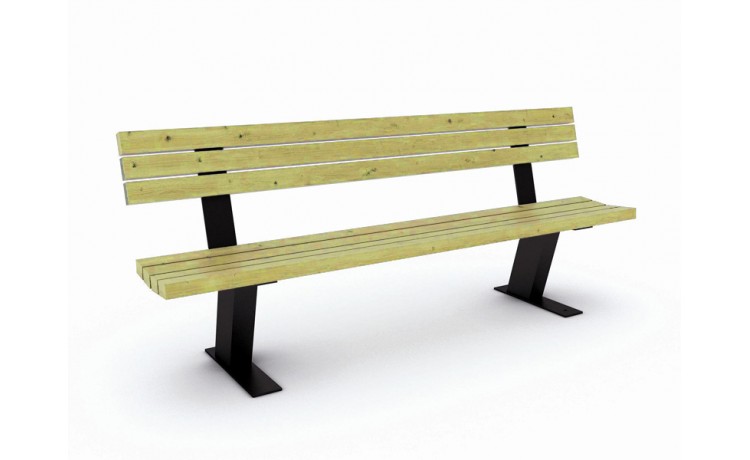 Banc d'extérieur en bois avec pieds en acier galvanisé laqués noirs
