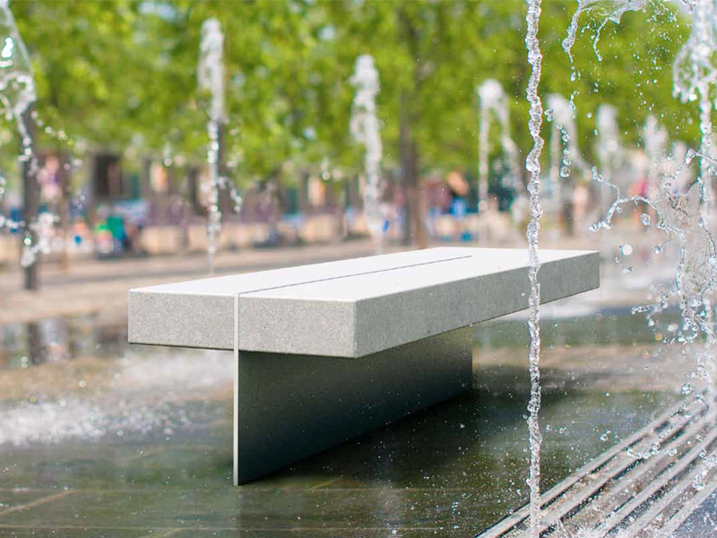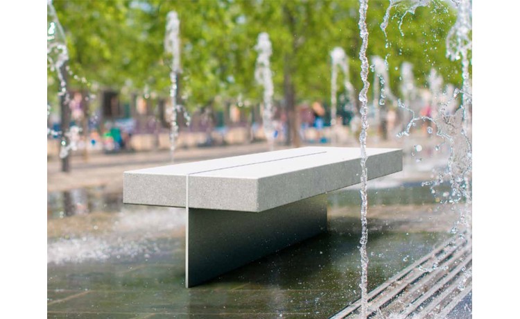 L'effet de légèreté de l'assise peut être accentué en positionnant un éclairage en dessous du bloc béton (en option).