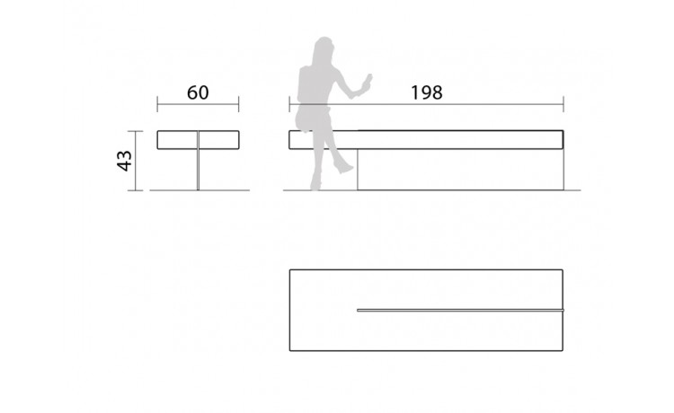 Dimensions : L 198 cm x l 60 cm x H 43 cm