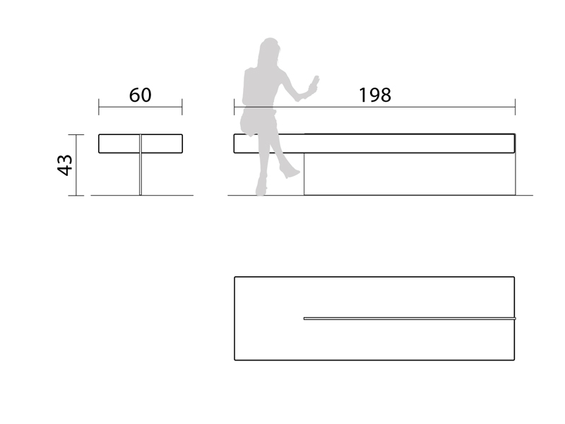 Banquette béton ONE gris lisse