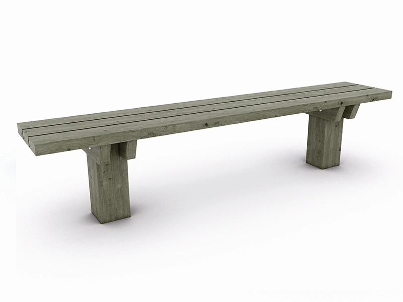 Banquette d'extérieur en bois avec une assise et pieds en pin traité de CL4