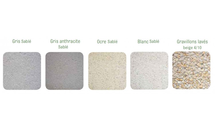 Aspect au choix = sablé gris/blanc/ocre _ Gravillon 4/10 (voir nuancier)