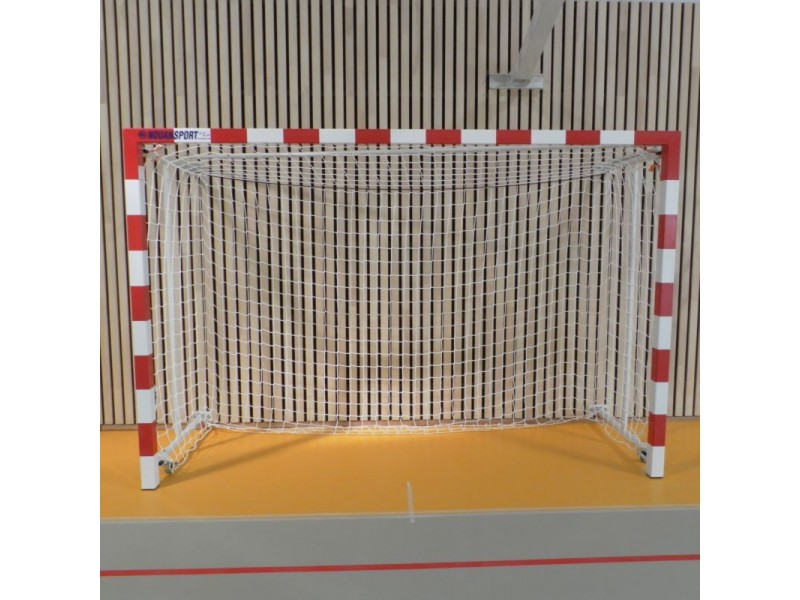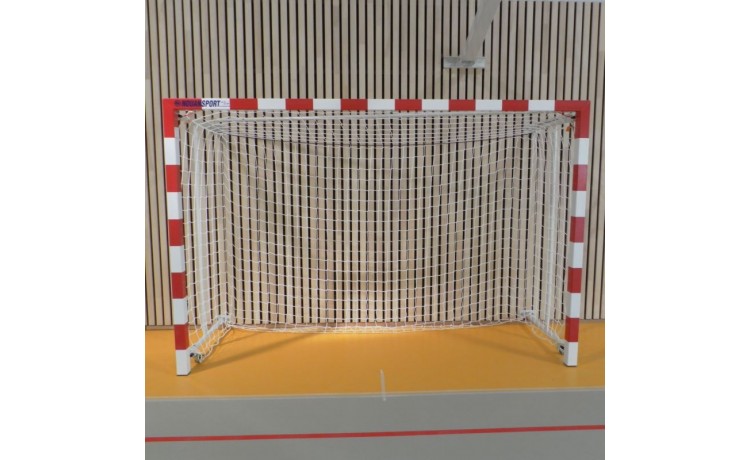 Façade en aluminium de 80 x 80 mm avec angles monoblocs soudés arrondis et damiers rouges et blancs sur les 4 faces (autres couleurs disponibles sur demande). Buts entièrement peints aux poudres polyester (pas dadhésifs). Procédé exclusif Nouansport.