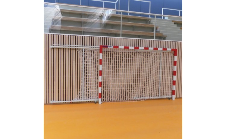 But à fixer au mur, permettant de le rabattre contre celui-ci pour mieux dégager laire dévolution. Système permettant une sécurité maximale contre tout risque de basculement. Dispositif de verrouillage autobloquant ne nécessitant pas de fixation au sol. Réglable en profondeur de 1,80 m à 2,20 m. La paire (sans les filets).