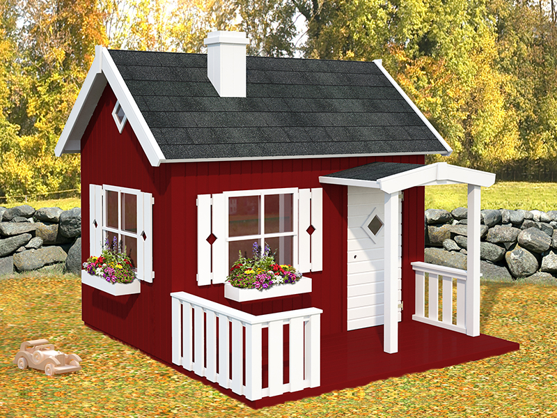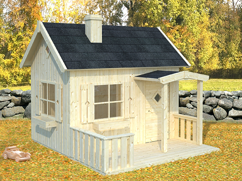 Cabane en bois épicéa pour enfants, sécurisée avec fenêtres en plexiglas.