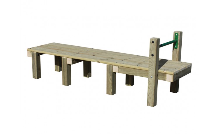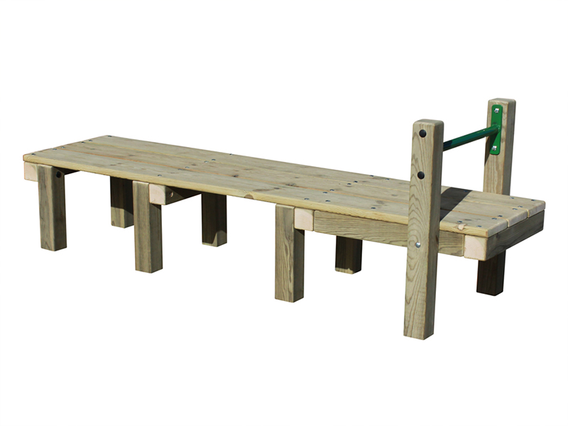 Bois et bois lamellé-collé traité en autoclave classe IV et acier peint à la poudre.