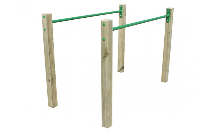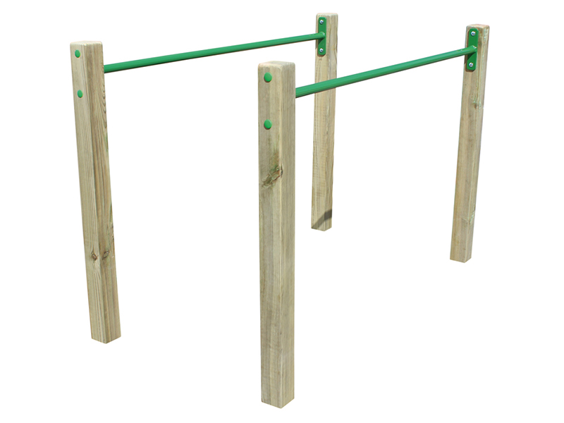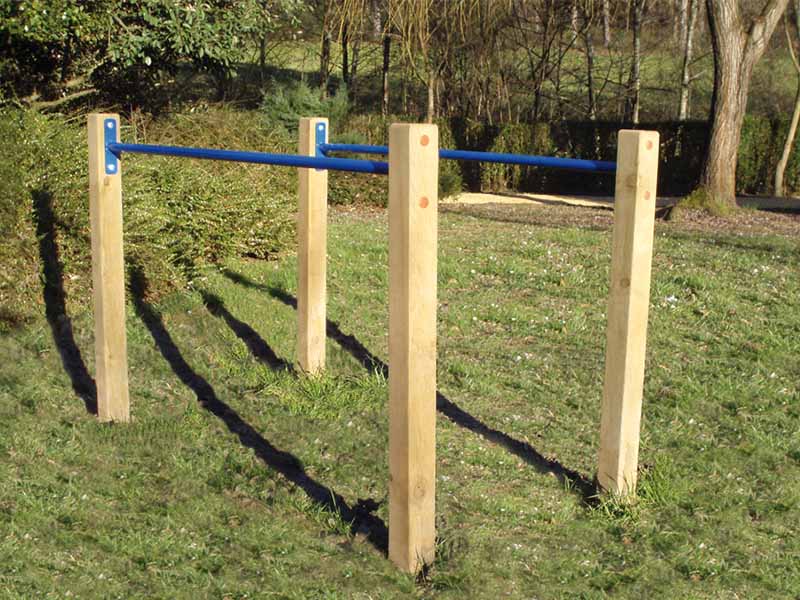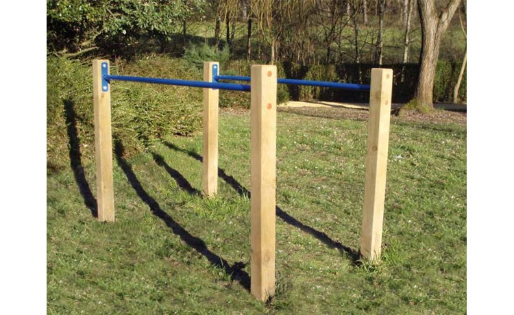 Bois lamellé-collé traité en autoclave classe IV et acier peint à la poudre.