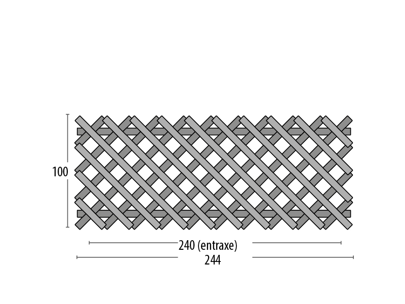 Demi-rondins de 6 cm en croisillons.2 lisses horizontales en 60 x 35 mm.