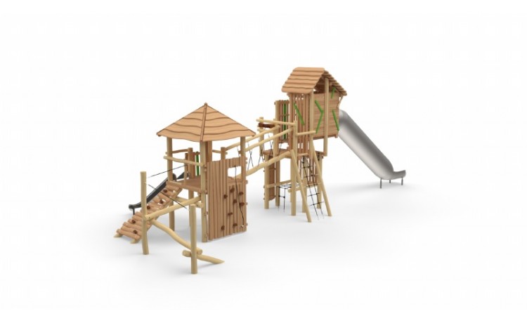 Combi-Forteresse - Parcours + Tour avec toit Toboggan tube