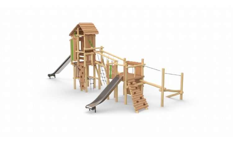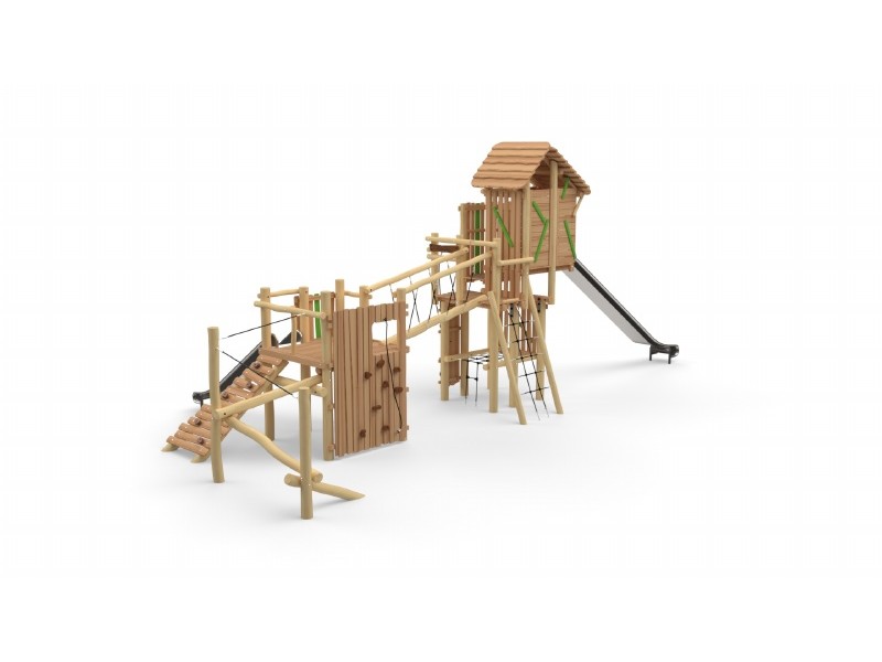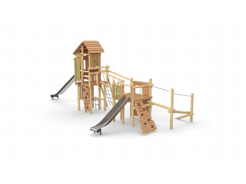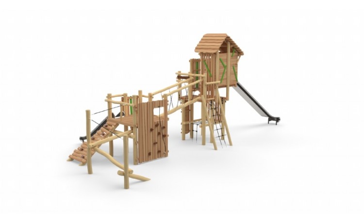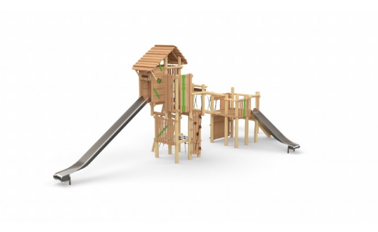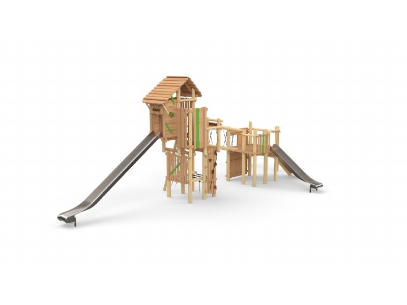 Combi-forteresse - Parcours + Tour sans toit Toboggan Inox