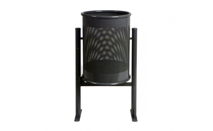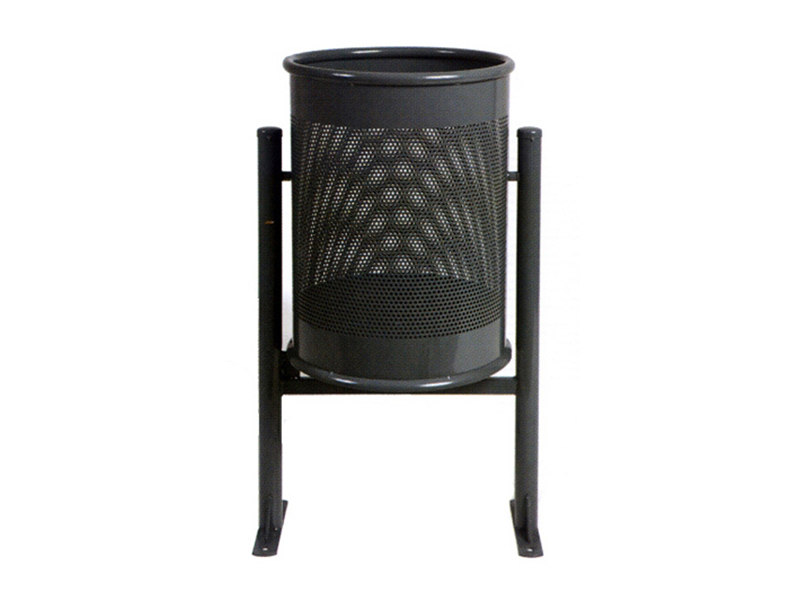 Equipée d'un seau en tôle perforée, basculant pour faciliter le vidage de la corbeille.