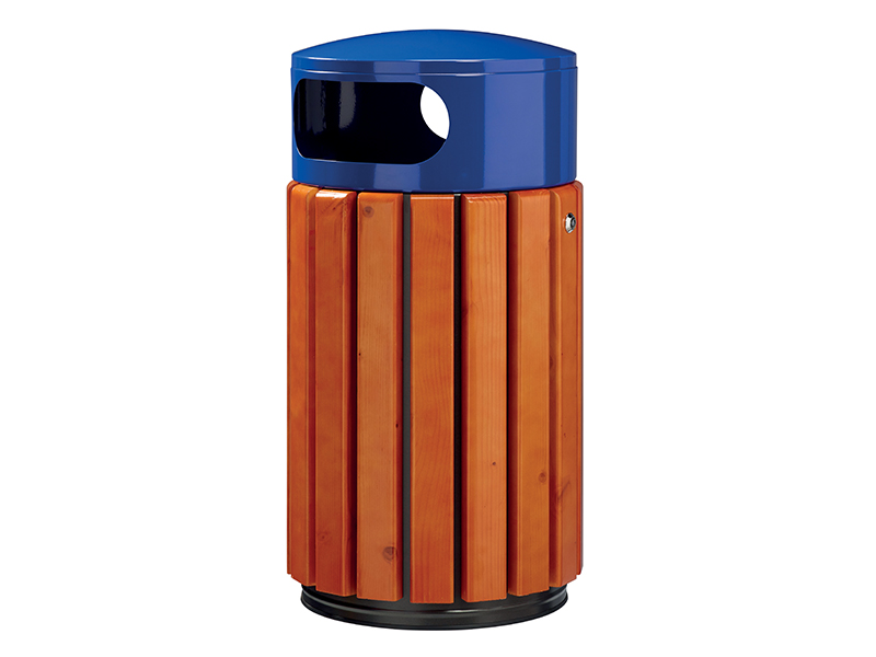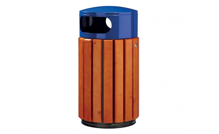 Corbeille bois métal 40 L à poser ou à fixer - Bleu / bois
