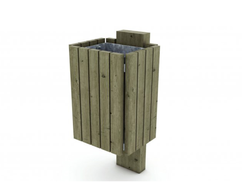 Corbeille de propreté en pin traité CL4 avec ossature en acier galvanisé