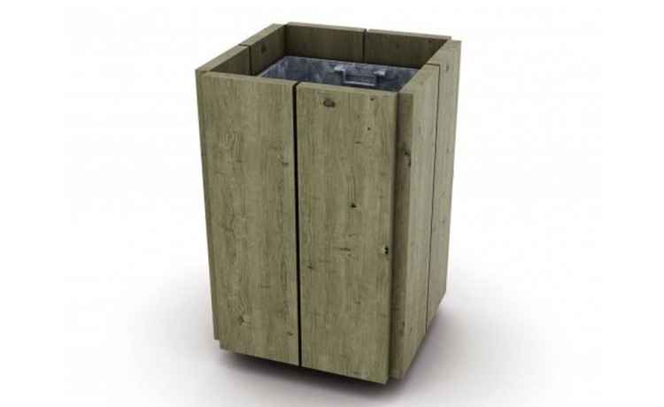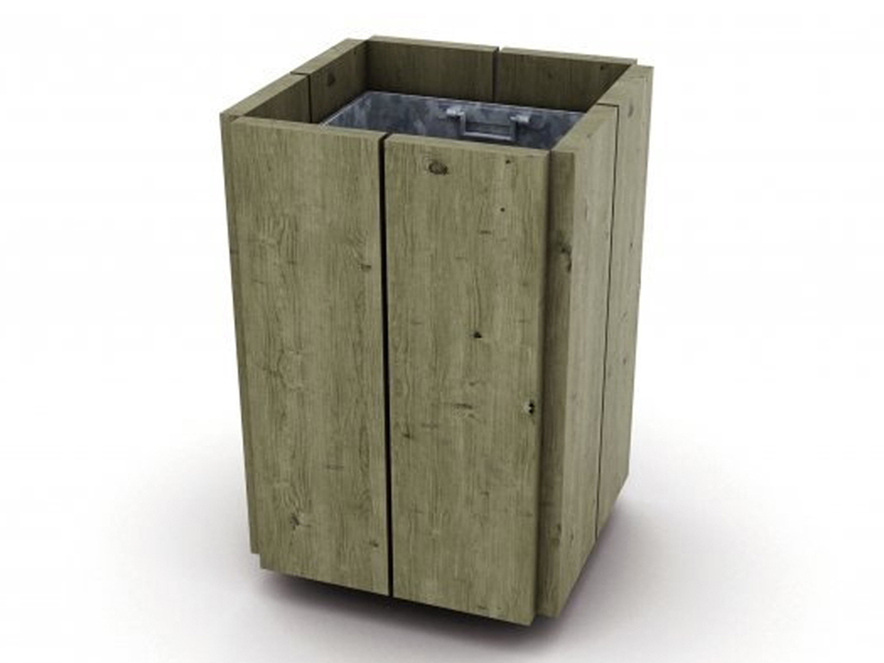 Corbeille de propreté en pin traité CL4 avec ossature en acier galvanisé