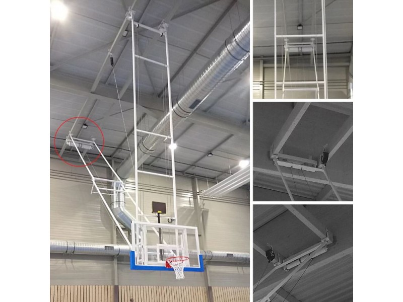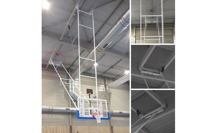 Enrouleur électrique spécial relevage de buts de basket pantographe fixés en charpente