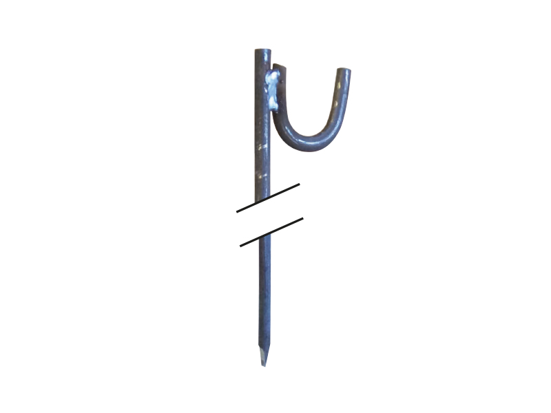 Piquet en acier permettant de positionner des chaînes ou des ruban de signalisation pour délimiter un terrain ou d'une zone de travaux.