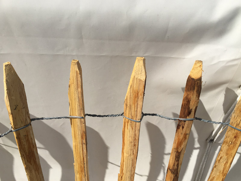Treillage échalas chataignier fendus, écorcés, pointés à quartier 9/11, écart 80 mm