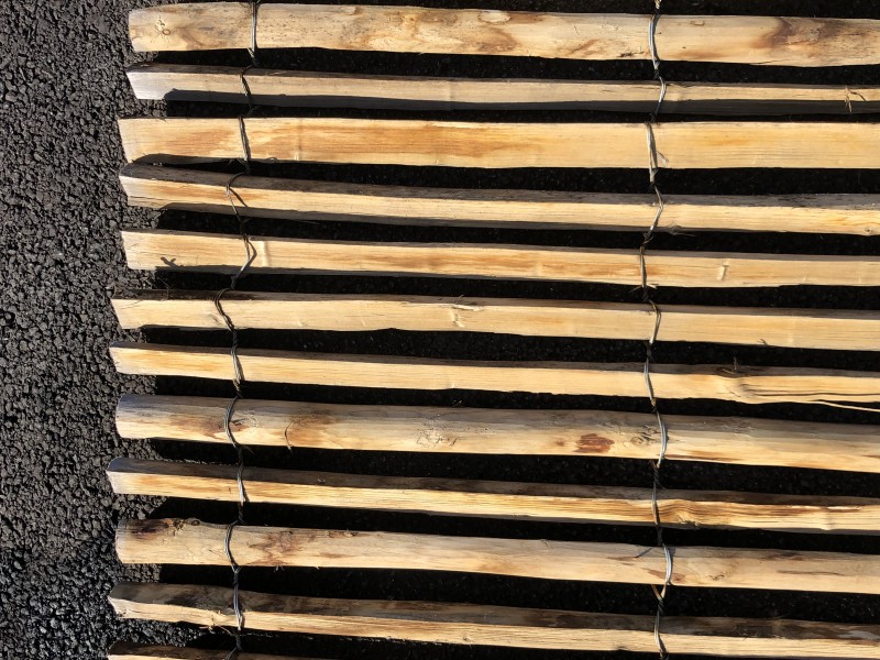 Treillage échalas chataignier fendus, écorcés, pointés à quartier 9/11, écart 20 mm