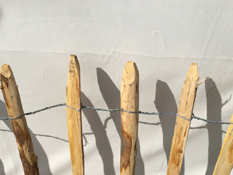 Treillage échalas chataignier fendus, écorcés, pointés à quartier 9/11, écart 100 mm