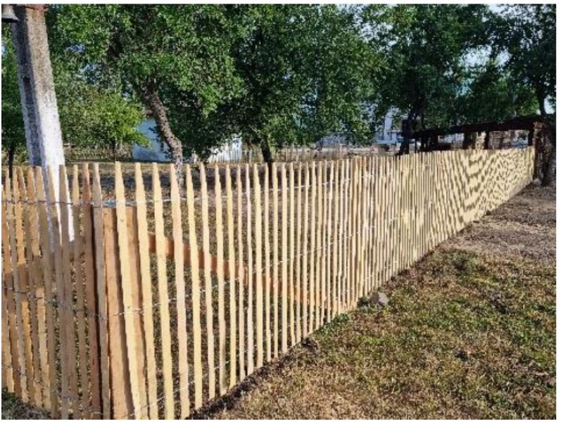 o Lattes de bois dacacia sciées triangulairement de 10-14cm de périmètre (+/- 1cm) et appointés (plus la ganivelle est haute, plus les échalas seront gros)