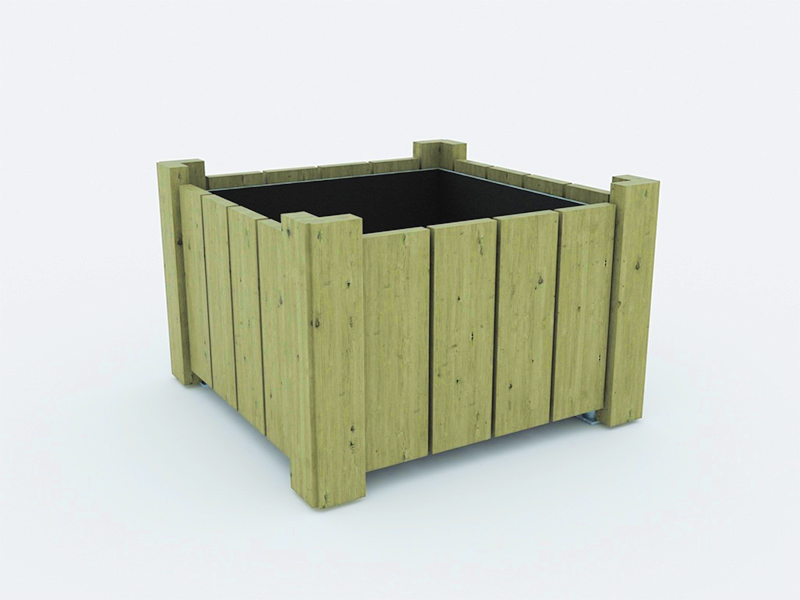 Jardinière d'extérieur en bois avec une armature en acier galvanisé