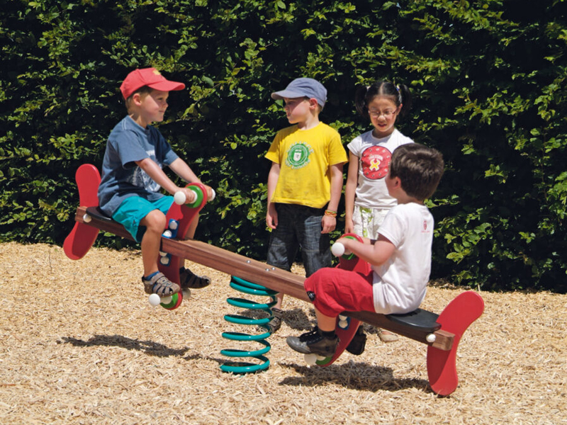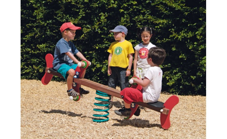 Matériaux : - Bois mélèze et padouck (bois tropical)- Panneaux en polyéthylène HPDE- Pièces en métal en polyester coating (plastifié) traité anti-corrosion- Ressort en acier spécial 20 mm- Ecrous et boulons protégés par un capuchon en forme de fleur