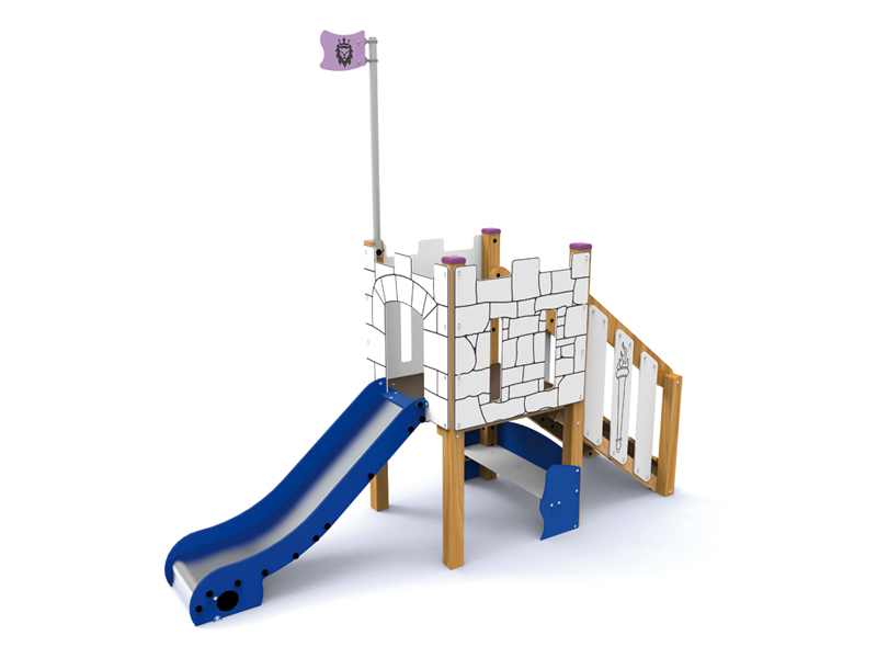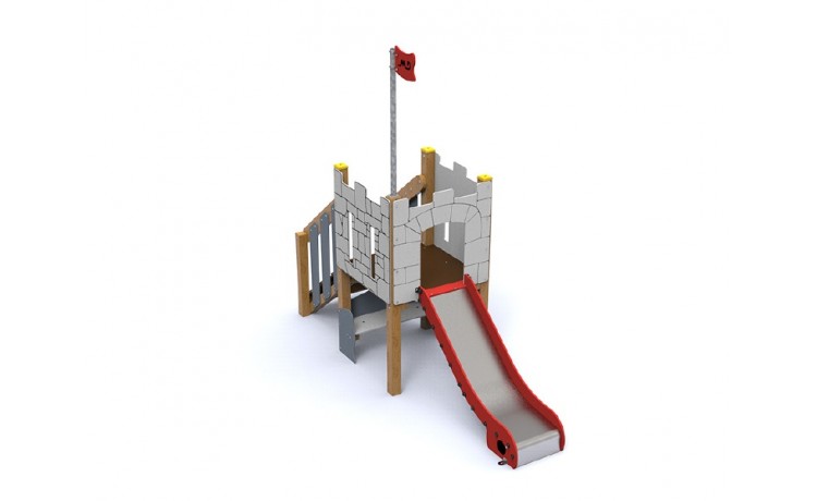 Composé de:1 tour , 1 rampe d'accés, 1 banc et 1 glissière en acier inoxydable et HPL