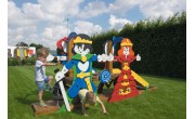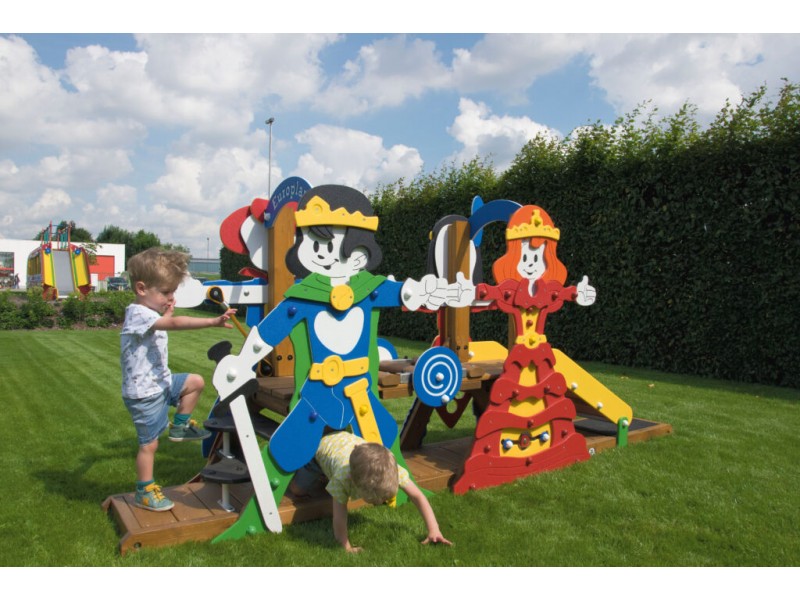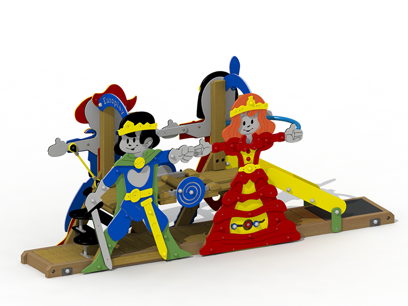 Zone de sécurité : 3.66 x 6.03 m.Type de bois : mélèze et chêneFeuille de polyéthylène HDPECapuchons de protection en forme de fleurMétal: acier inoxydable et alliéCorde en polypropylèneGARANTIE : 10 ans sur les panneaux en polyéthylène, 5 ans contre la corrosion du métal, 2 ans contre les vices de fabrication