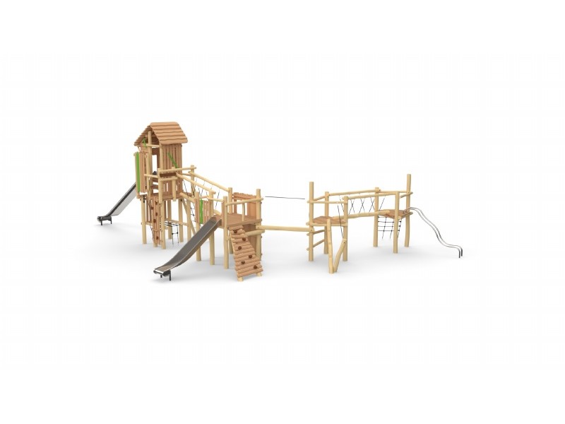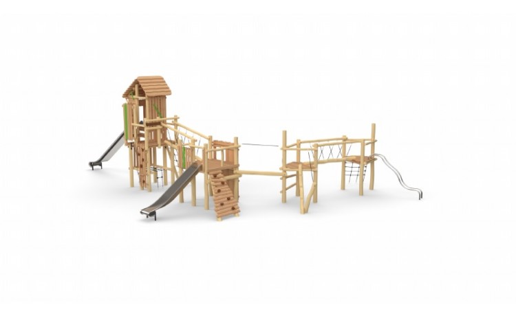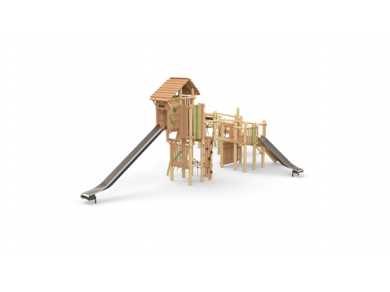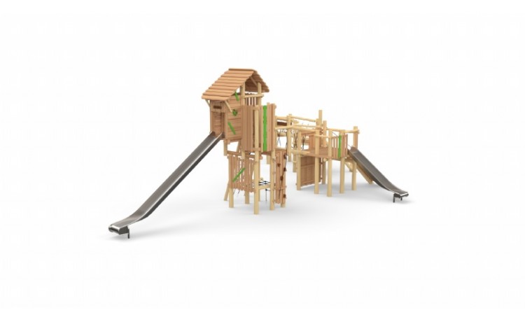Mega-Forteresse - Coccinelle + Tour avec toit Toboggan Inox