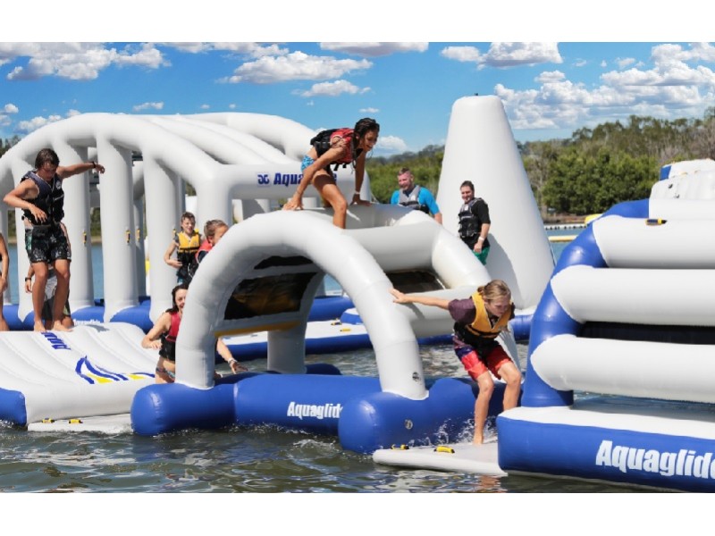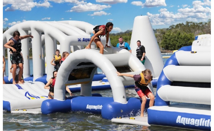 Module gonflable aquatique pour un défi d'escalade à ne pas sous-estimer.