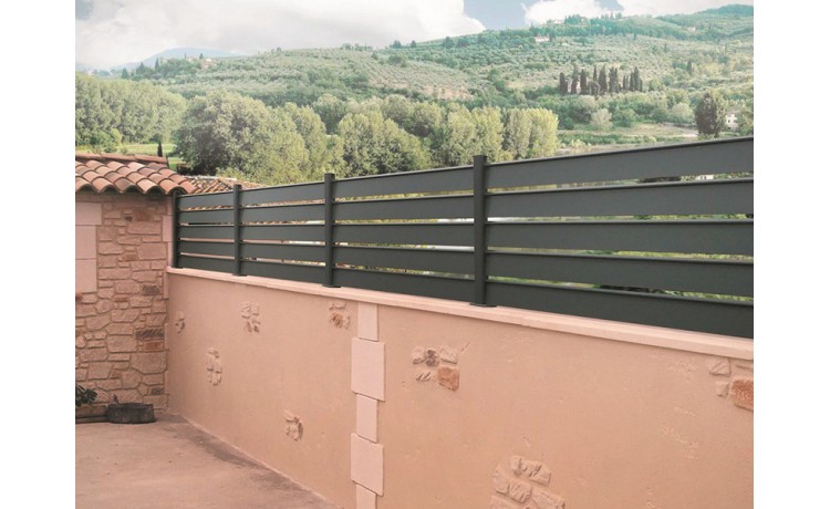 La clôture alu ALUJOUR vous offre la possibilité dajuster la hauteur de votre brise-vue (de 0.15 à 1.80 m de haut) mais aussi et surtout dajourer selon votre convenance en empilant nos entretoises pour obtenir lespace souhaité entre chaque lame.