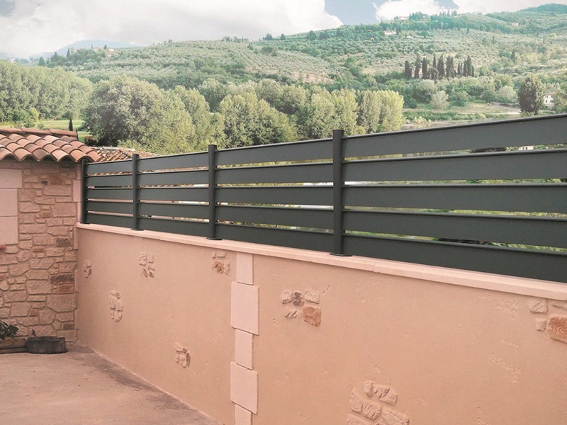 Le panneau brise-vue ALUJOUR est composé de lames en aluminium, gage de résistance et durabilité dans le temps.
