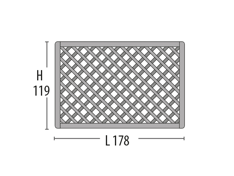 Panneau treillis diagonaux avec cadre 70 x 44 mm en pin traité autoclave classe IV. Lattes rabotées de 38 x 12 mm traités classe III.