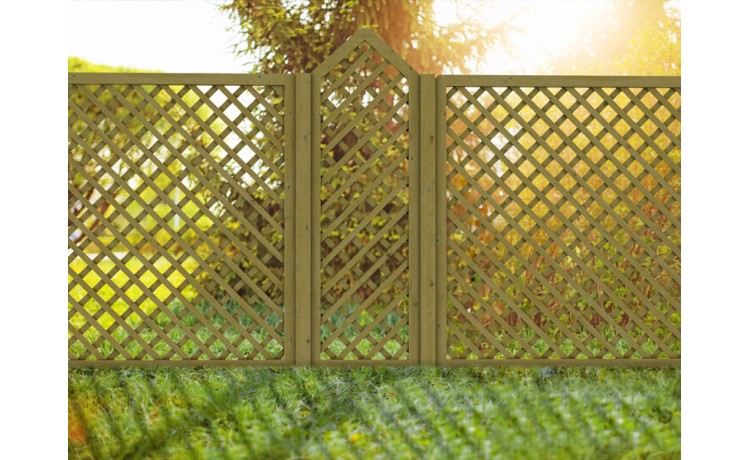Panneau treillis diagonaux avec cadre 70 x 44 mm en pin traité autoclave classe IV. Lattes rabotées de 38 x 12 mm traités classe III.