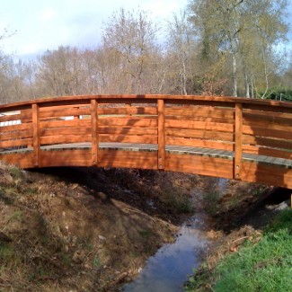-Passerelle lasurée (choix lasures - voir catalogue Mobextan. A préciser à la commande) -Passerelle livrée (transport en sus) montée avec gardes corps à poser sur plots béton (prévoir une grue).-Poids env. 3 300 kg