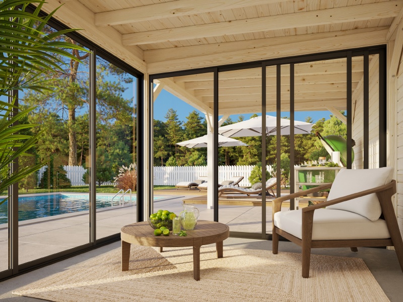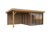 Une lazure est assurée avec l'application de 2 couches de lasure, couleur châtaigner (hors platelage)