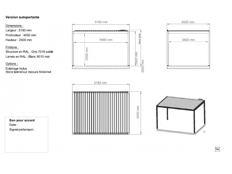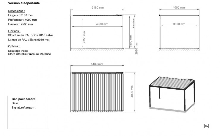 Pergola bioclimatique autoportante Nouméa 4 x 5,18m