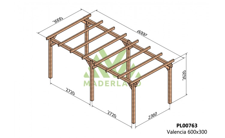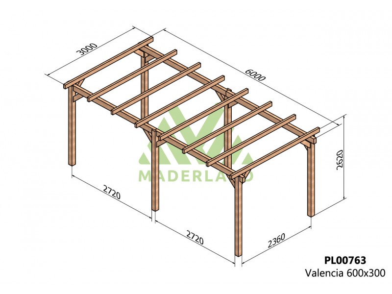 PERGOLA LAMELLÉ-COLLÉ AUTOPORTANTE GRENOBLE 600x300cm