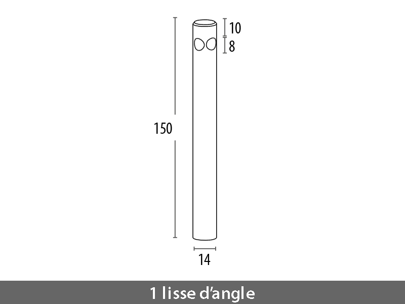 Dimensions Poteau d'angle 1 lisse Ø 14 H 150 cm