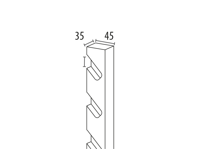 Profil dimensions 45 X 35 MM H 180 cm pour support des lames