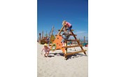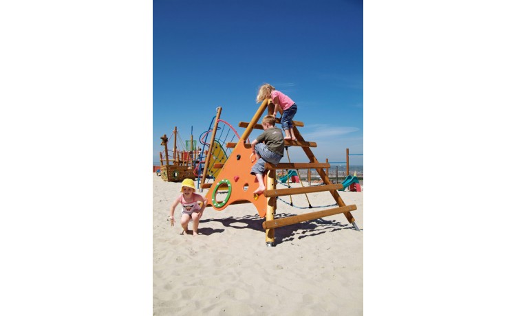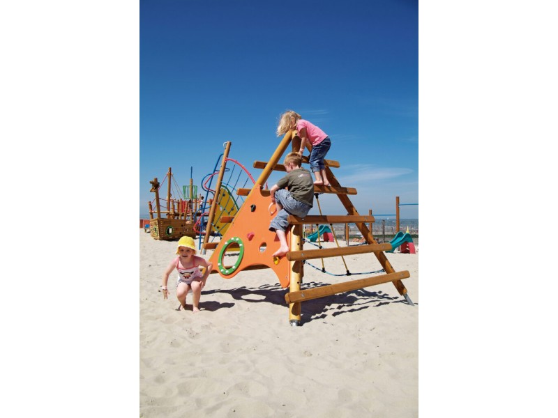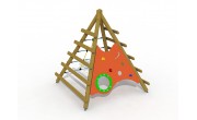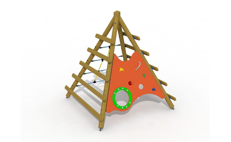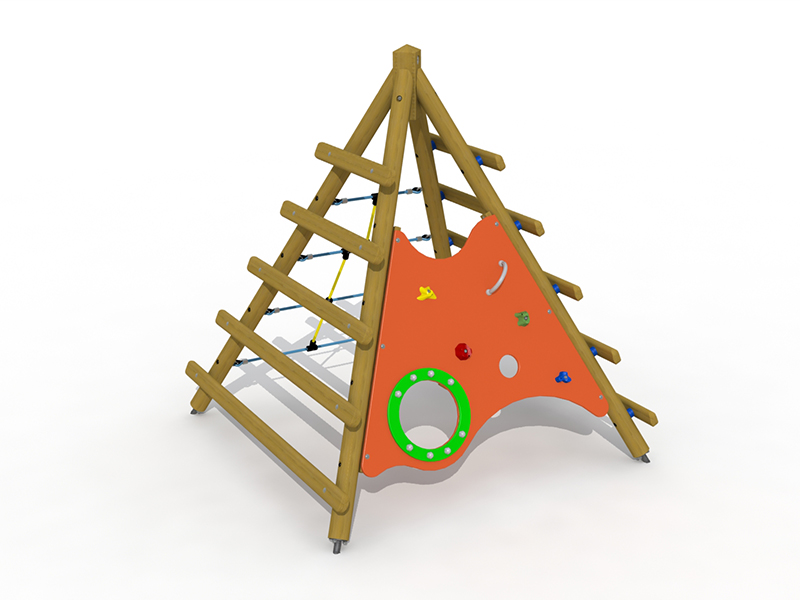 Le jeu est construit de 2 échelles descalade en bois, dun panneau HDPE descalade orange avec de différentes prises descalade et poignées en plastique et dun filet à grimper.