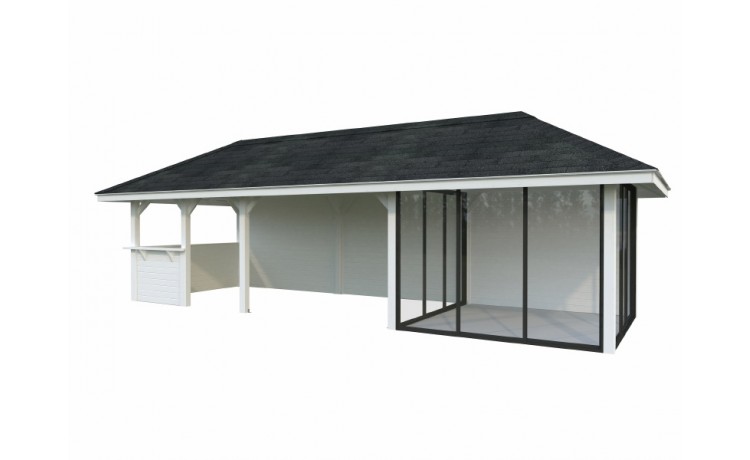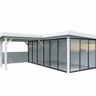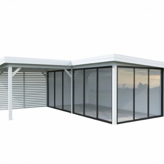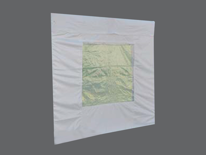Toile polyester de mêmes caractéristiques que le toit, un velcro de 25 mm en partie haute permet une accroche rapide et simple, les rideaux sattachent entre eux par une glissière latérale