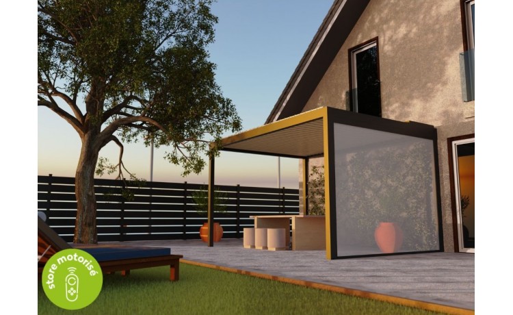Store latéral motorisé pour pergola autoportante NOUMÉA 3.08 x 4.13m.