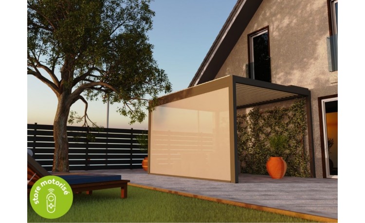Store zippé motorisé pour facade de pergola murale et autoportante PANAMA 3 x 6m