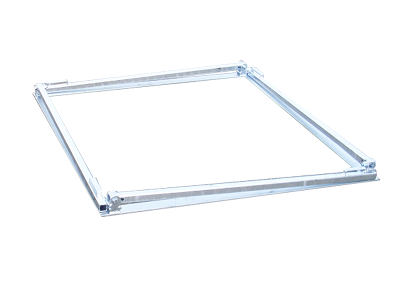 Cadre en plat Montants articulés avec verrouillage en position verticaleL 1200 x L 1200 x h 1160 mm (h réduit 80 mm)Finition galvanisé à chaud Poids : 28 kgs